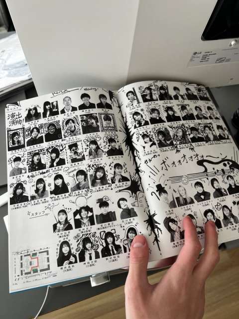 2024年に東京芸術劇場にて開催された多摩美術大学 演劇舞踊デザイン学科の卒業公演『音楽』(原作: 大橋裕之『音楽』)のハンドアウトやノベルティポスターを手がけています。依頼が来た時点で既にメインビジュアルやタイトルロゴは決まっており、それらを踏襲した上でデザインを制作する必要がありました。また、卒業公演特有の課題として、演者だけではなく、脚本や舞台装置も学生によって制作されるため、なるべく全ての人にスポットライトが当たる必要があります。原作の漫画や、それを元にしたアニメ映画、さらに公演のリハーサルの様子から、舞台となる学校のアンダーグラウンドかつ雑多な印象を汲み取り、1ページごとに異なる世界観を生み出すようにレイアウトしました。また、ストーリーが展開されるにつれて舞台装置が変化し、最後にライブフェスティバルが行われるという演出の特徴から、ページ左下に舞台図面をレイアウトし、ページが進むごとに装置のレイアウトが変化する様子が分かるようになっています。また、大橋裕之氏によって描きおろされたイラストを使い、ノベルティグッズとしてポスターを制作しました。